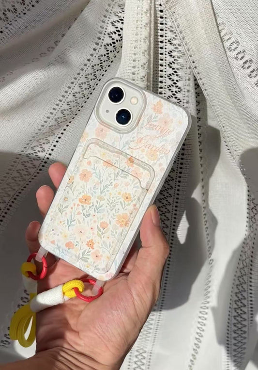 携帯ケース かわいい 花 ストラップ 耐衝撃 カード アイホンケース スマホン ガーデン おしゃれ 黄変対策 柔らかい